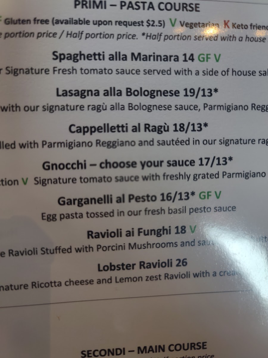 Choose your sauce. Italian gorgonzola with white cream reduction vegetarian. Signature tomato sauce with freshly grated Parmigiano Reggiano vegetarian. Signature ragù Bolognese.